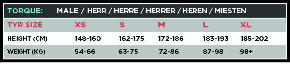 | Torque Elite Swimskins inderside er konstrueret til at være hurtigtørrende og vandafvisende og har mindre end 5% vandoptagelse i materialet. Med andre ord er denne swimskin yderst vandafvisende og holder dig dermed let og tør gennem hele konkurrencen, i stedet for at tynge dig. Materialet er ligeledes meget fleksibelt, og du kan bevæge dig frit. TYR Torque er udstyret med en lynlås til super hurtigt skift. Materiale: 70% Nylon / 30% Spandex |